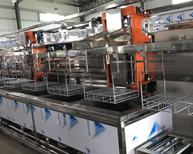 全自動六槽超聲波清洗機工作原理: 全自動六槽超聲波清洗機原理主要是將換能器,將功率超聲頻源的聲能,并且...